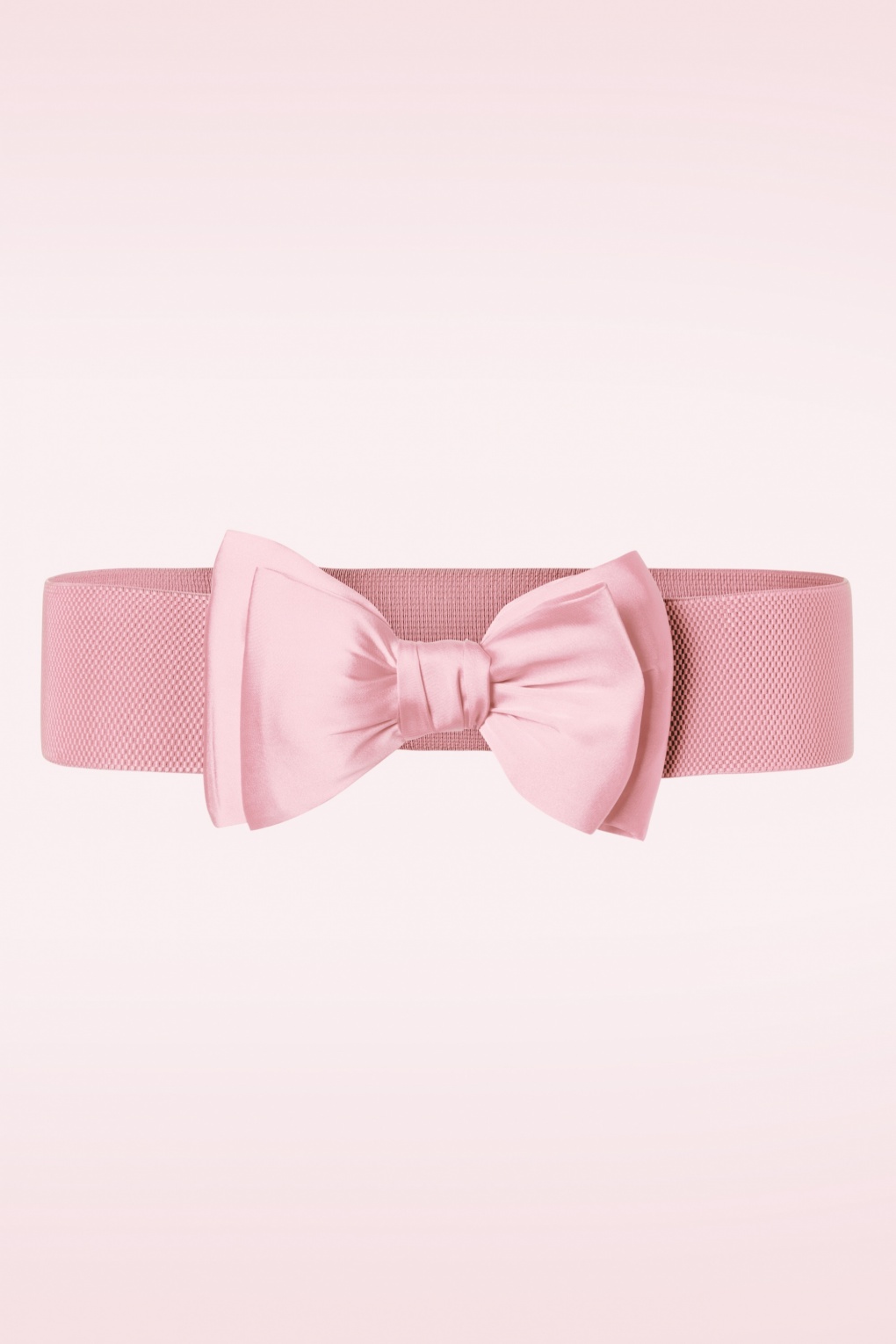 Dieser wunderschöne, breite Stretch-Gürtel wird für eine schöne Silhouette in der Taille getragen, oh la la! Hergestellt aus einem hellrosa elastischen Band mit einer großen auffälligen Schleife, die ihre Form behält. * Feste Schleife * Wird mit 2 Druckknöpfen verschlossen