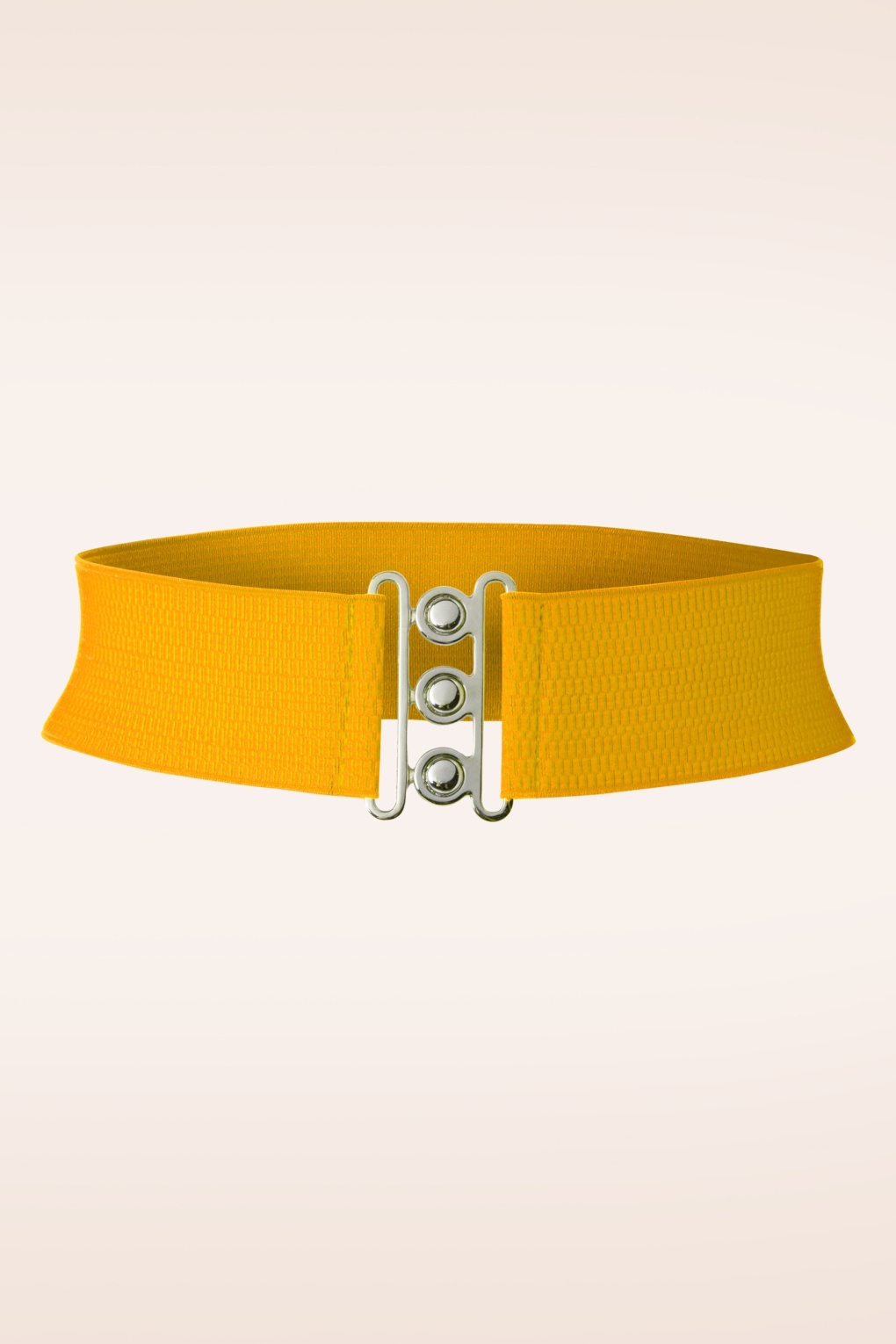 Dieser 50s Lauren Retro Stretch Belt in Mustard wird jedes Outfit wunderbar ergänzen! Eine feminine Silhouette? Die Taille betonen? Das kannst du mit diesem Lauren Gürtel! Hergestellt aus einem breiten Gummiband in Senf und versehen mit einem silberfarbenen Verschluss der in Taillenhöhe auf der Vorderseite eingehakt wird! * Silberfarbener Verschluss * Elastisch