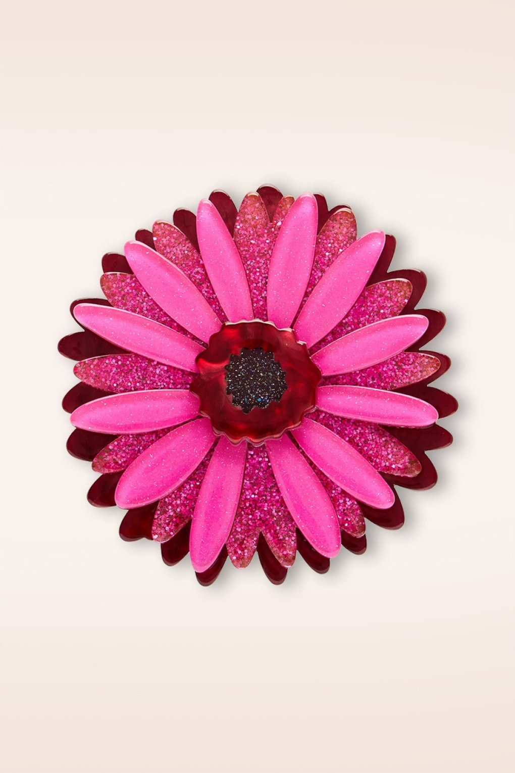 Fächerförmig angeordnete Blütenblätter in Pink und Rot umrahmen ihr hübsches Gesicht, das hell und fröhlich aus deiner Vase strahlt. * Online in den Niederlanden, Deutschland und Belgien exklusiv bei Topvintage erhältlich * Aus mehreren Schichten Harz gefertigt, von Hand montiert und bemalt * Silberfarbener Sicherheitsnadel-Verschluss * Beim Kauf von zwei oder mehr Artikeln aus der Kollektion „Fan Favourites“ bekommst du eine kostenlose Überraschungsbrosche dazu (solange der Vorrat reicht!) * Entworfen von Carmen Hui