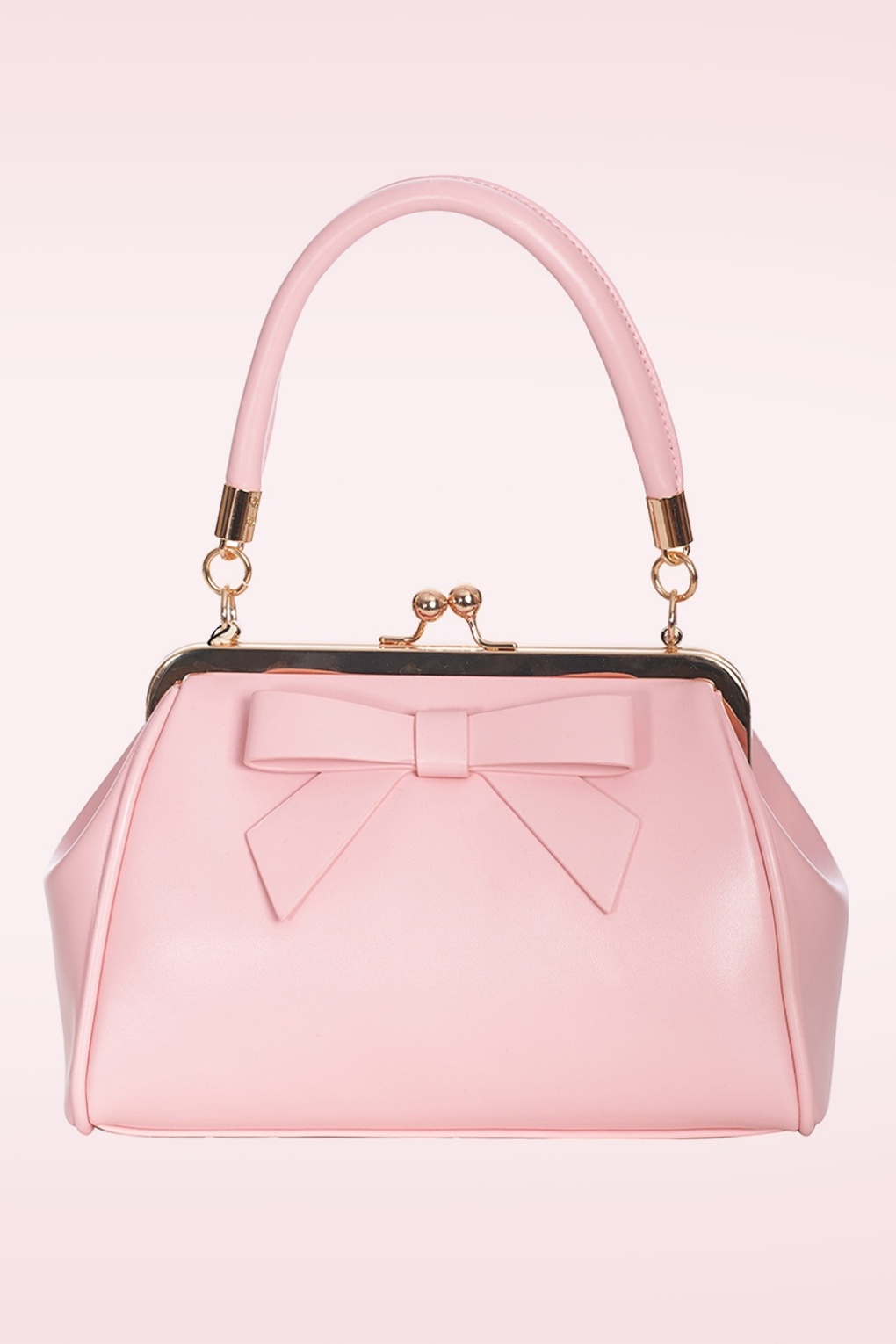 Ein absoluter Traum! Die kleine Schwester der klassischen Handtasche American Vintage ist mit einem auffälligen, goldfarbenen Clipverschluss versehen, der ihr einen echten Vintage-Touch verleiht. Das Modell aus mattem Kunstleder in Rosa ist mit einer entzückenden Schleife verziert. * Kleines Format * Clipverschluss * 3 zusätzliche Innenfächer (eines mit Reißverschluss) * Abnehmbarer Schulterriemen * Kann auch als Crossbody-Tasche getragen werden * Vollständig gefüttert * Groß genug für dein Telefon, Schlüssel und eine kleine Geldbörse