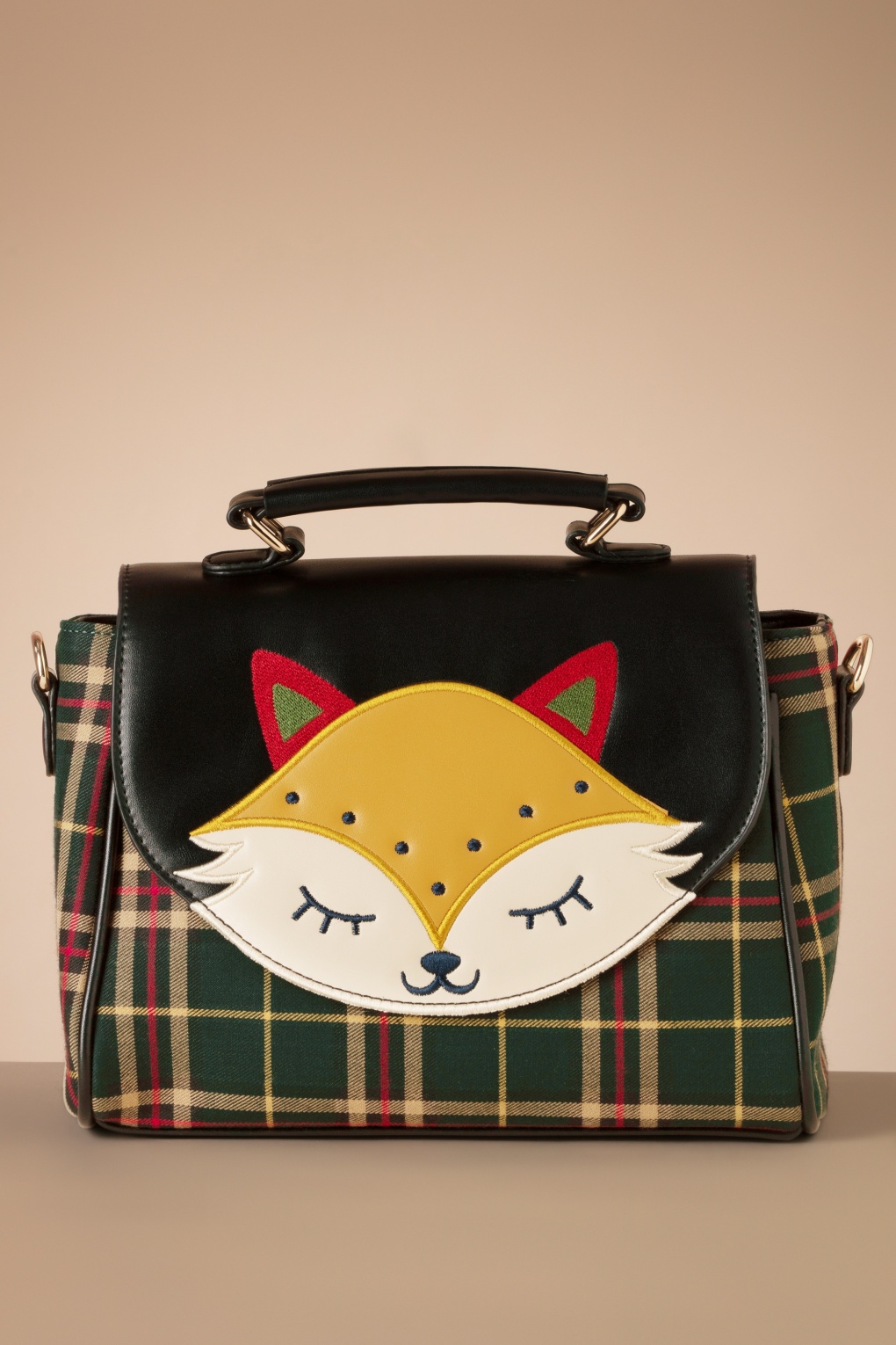 “Because even your handbag should have a foxy attitude!“ Diese Handtasche wurde aus einem grün-karierten Stoff gefertigt und hat eine Kunstleder-Klappe mit einem süßen Fuchs. Zudem wird sie mit einem längeren, verstellbaren Gurt geliefert, damit du sie auch spielerisch über deine Schuler hängen kannst. * Small sized * Klappe mit verdecktem Magnetverschluss * Reißverschluss * 3 Extra Fächer an der Innenseite, eins davon mit Reißverschluss * Abnehmbarer Gurt * Kann ‚crossbody‘ getragen werden * Vollständig gefüttert * Ausreichend Platz für dein Handy, deine Schlüssel, dein Portemonnaie und deinen liebsten Lippenstift