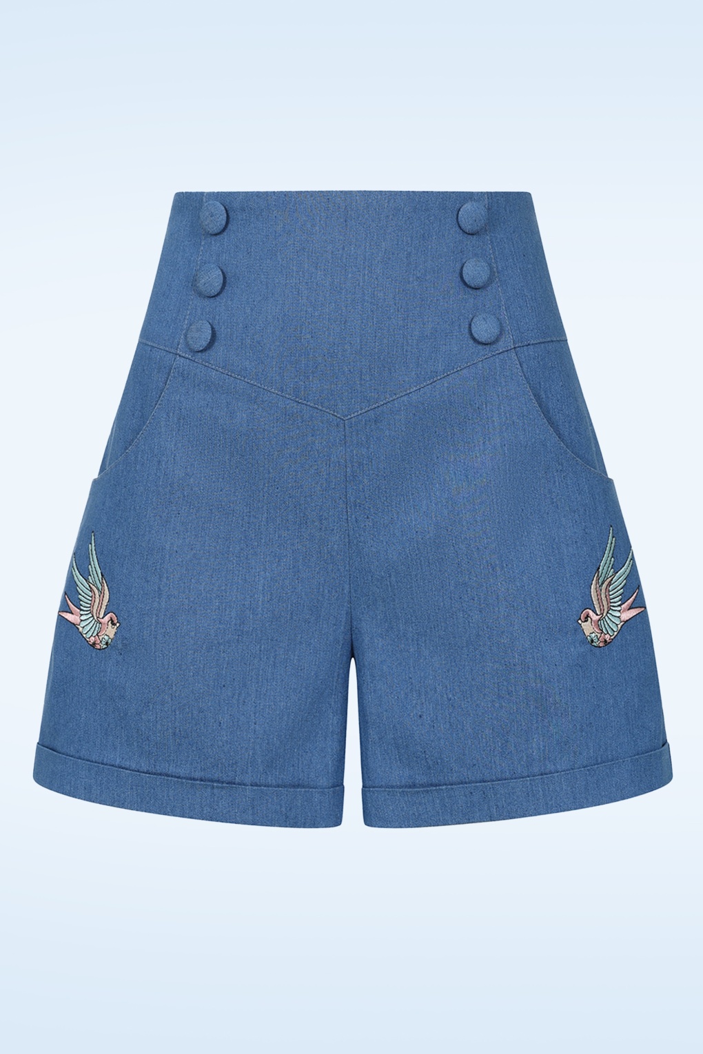 Millie Swallow Shorts in Denim Blau.
