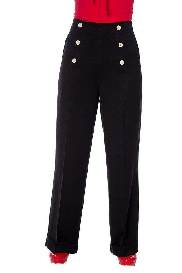 Banned Marlene-Hose Retro Adventures Ahead Schwarz Vintage Trousers 40er Jahre Stil