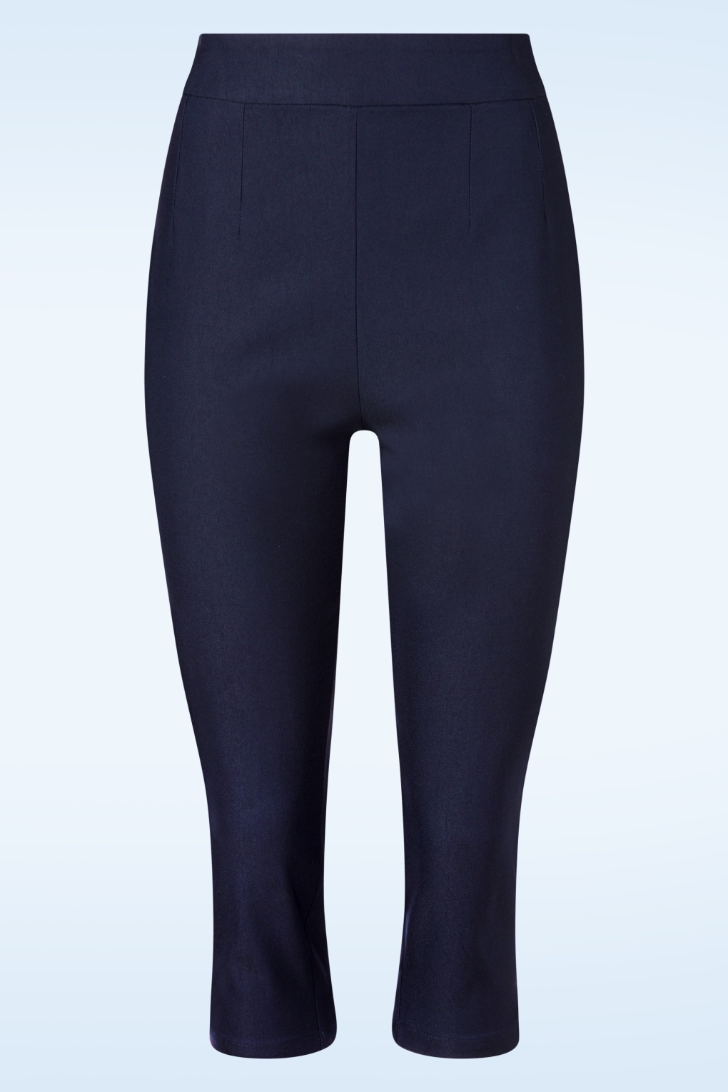 In der Taille klassisch, am Knöchel verspielt: Diese Caprihose ist ein echter Klassiker mit einer besonderen Note. Die hohe Taille zaubert eine feminine Vintage-Silhouette, während die ⅞-Länge einen eleganten Look kreiert. Der seitliche Reißverschluss sorgt für eine wunderbar schnittige Optik. Das Modell ist aus einem bequemen Baumwollmischgewebe gefertigt, das dank eines geringen Stretchanteils eine perfekte Passform garantiert. * Hohe Taille * Seitlicher Reißverschluss * ⅞-Länge * Exklusiv bei Topvintage erhältlich