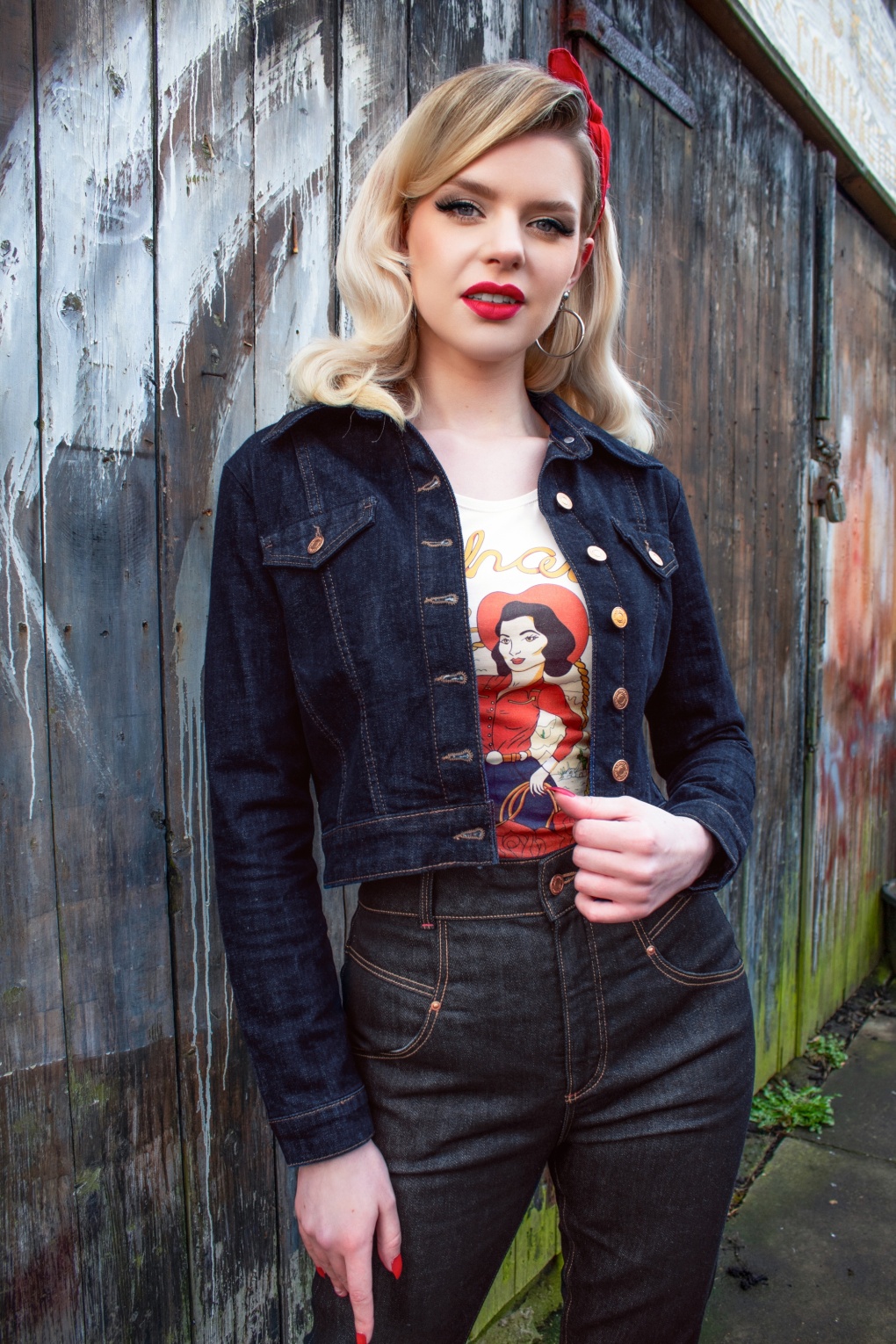 “Denim is a love that never fades!“ Gefertigt aus einem festen, blauen Baumwollmix in Dunkeldenim mit leichtem Stretch, der jahrelanges Tragevergnügen garantiert. * Etwas kürzeres Modell * Kleiner spitzer Kragen * Lange Ärmel * Brusttasche * Kupferfarbene Knöpfe * Authentische braune Nähte