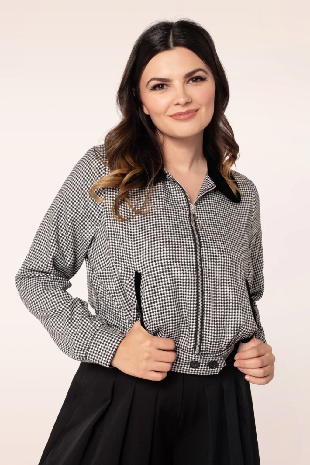 Teddy Pied de Poule Jacke in Schwarz und Weiß.