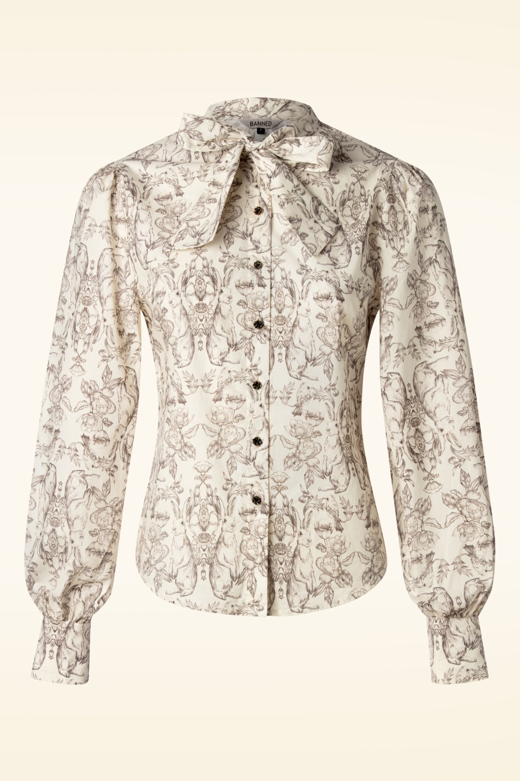 “You’re somebunny special!“ Dieses Schätzchen hat feste Bindebänder, lange Puffärmel mit Manschetten und tolle kupferfarbene Knöpfe in der Form von Blümchen. Gefertigt aus einer festen, aber angenehm fallenden Baumwolle in Off White (100%), versehen mit einem Muster herzallerliebster Kaninchen und Blumen in Braun. * Kleiner Stehkragen * Feste Bindebänder * Lange Puffärmel mit Manschetten * Blumenförmige Knöpfe * Lang genug, um mit einer normalen Hose kombiniert zu werden * Bitte beachte: Die Farbe der Hose im Video kann von der tatsächlichen Farbe der Hose abweichen.