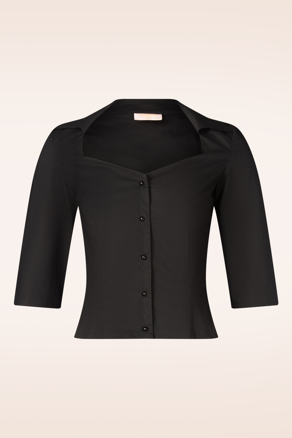 Schick und stylisch: Die feminine Bluse Katty wurde von unseren Inhouse-Designern entworfen und ist exklusiv bei Topvintage erhältlich! Das Modell mit Diamant-Ausschnitt hat einen Spitzkragen, 3/4-Ärmel und eine Knopfleiste. Es ist aus einem festen, aber dennoch geschmeidigen Baumwollmischgewebe in Schwarz gefertigt, das dank eines geringen Stretchanteils herrlich angenehm zu tragen ist. Eleganz mit dem gewissen Etwas! * Diamant-Ausschnitt * Leicht tailliert * Spitzkragen * ¾-Ärmel * Knopfleiste vorne * Passend für Hosen mit normaler Leibhöhe * Exklusiv bei Topvintage erhältlich