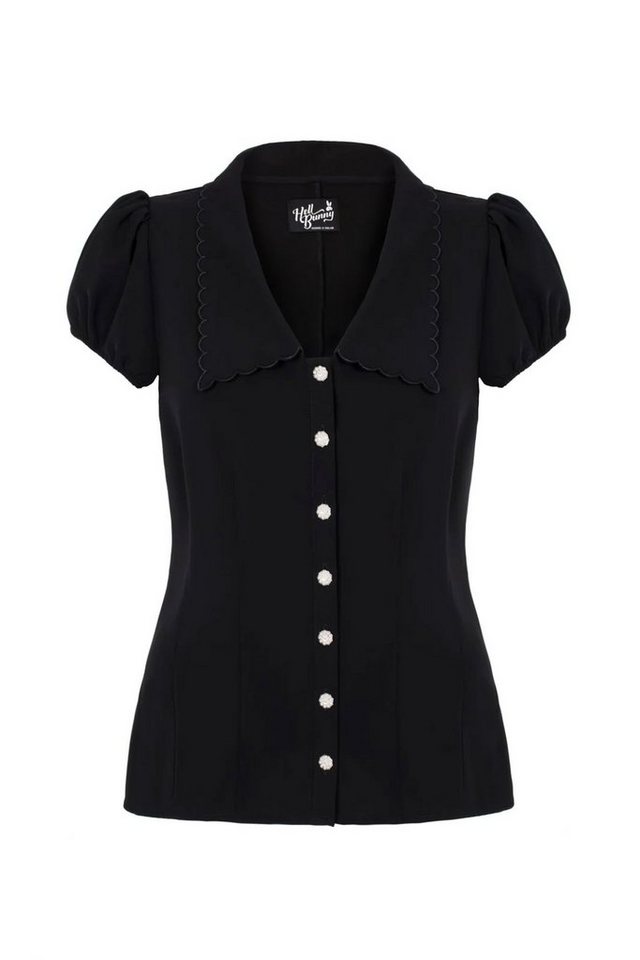 Home / Willkommen bei Pinup-Fashion.de: Deine Welt des zeitlosen Glamours! / Oberteile / Blusen / Hell Bunny Blusenshirt Maddy Schwarz