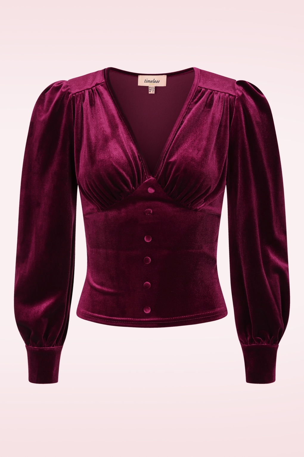 Hinreißend glamourös: Dieses wunderschöne Oberteil mit V-Ausschnitt, attraktiver Raffung im Brustbereich und Zierknöpfe auf der Vorderseite strahlt pure Eleganz aus. Die langen Puffärmel mit Manschetten sorgen für eine romantische Note, während der weiche Stoff in Weinrot, der sich wie Samt anfühlt und auch so aussieht, deinen Look noch edler wirken lässt. * Raffung im Brustbereich * Zierknöpfe * Lange Puffärmel mit Manschetten * Einfach reinschlüpfen und los geht’s!