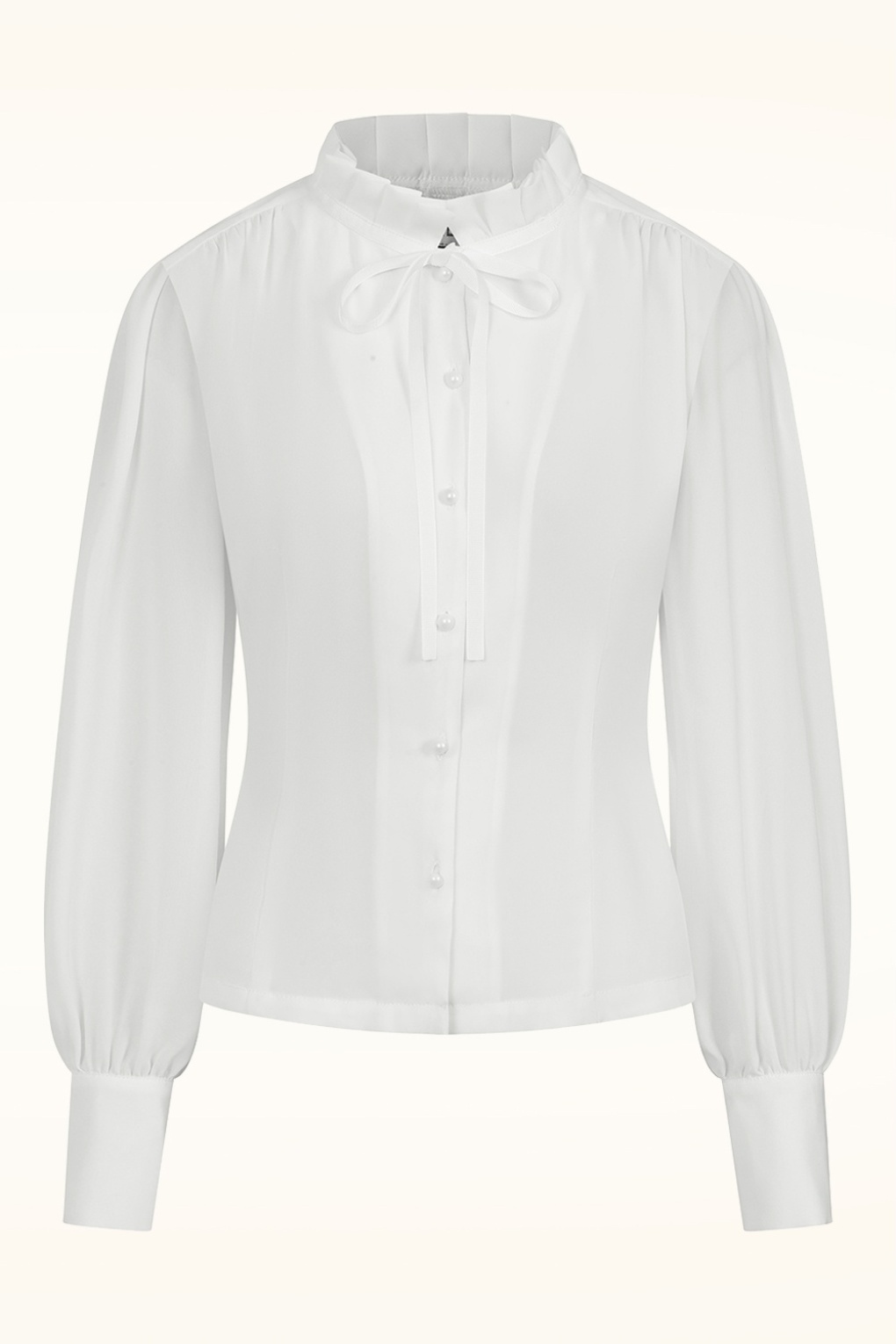 Mit diesem Teil schreibst du deine eigene Style-Geschichte! Die wunderschöne weiße Bluse mit langen Puffärmeln, plissiertem Rüschenkragen und Schleifendetail ist aus einem glatten und geschmeidigen Stoff (nicht dehnbar) gefertigt. * Plissierter Stehkragen * Lange Puffärmel mit Manschetten * Schleifendetail * Knopfleiste * Ideale Länge auch in Kombination mit Low-Waist-Hosen
