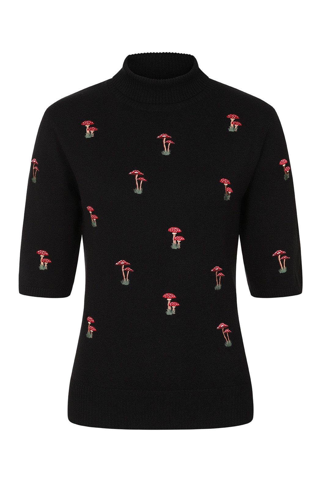 Banned Kurzarmpullover Mushroom Dreams Schwarz Vintage