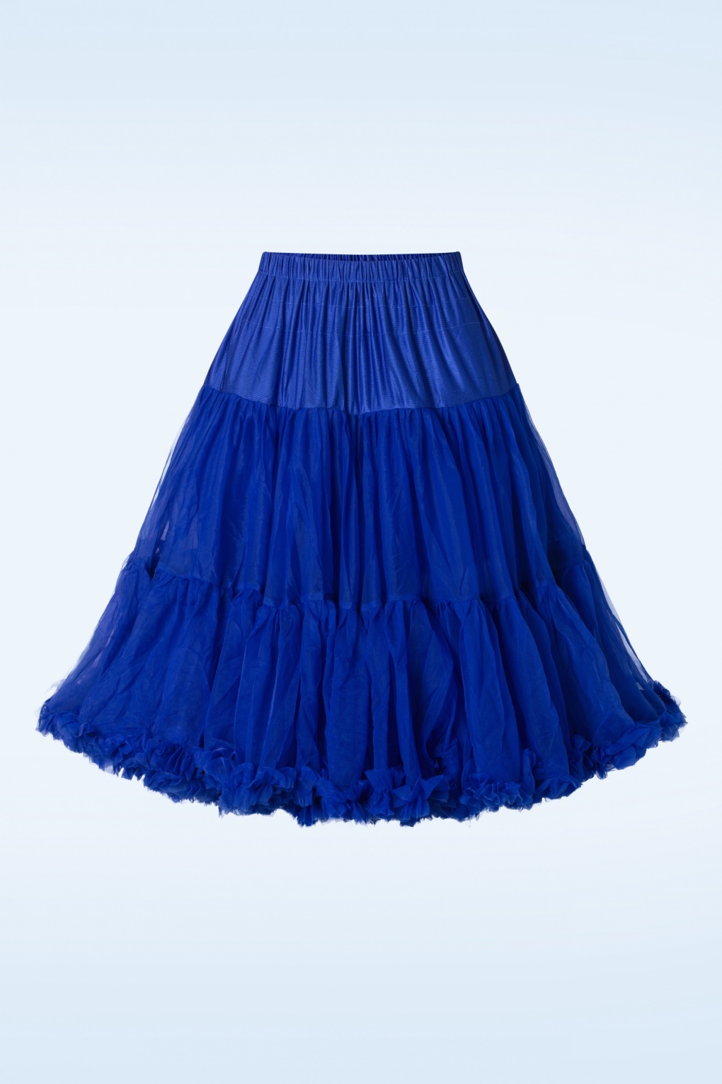 “Behind every great twirl is a trusty petticoat!“ Die doppelte Stoffschicht verleiht extra Volumen und schwingt graziös mit dir mit und wurden mit verspielten Rüschen am Saum versehen. Die oberste Schicht wurde aus königsblauem Tüll und der Unterrock aus glänzendem Satin gefertigt. Vollendet mit einem elastischen Bund. Dieser Petticoat verleiht jedem Swing Kleid das gewisse Extra! * Geeignet für all unsere Swing Kleider und Röcke * Elastischer Taillenbund * Fällt über das Knie bei einer Größe von 1,70 m
