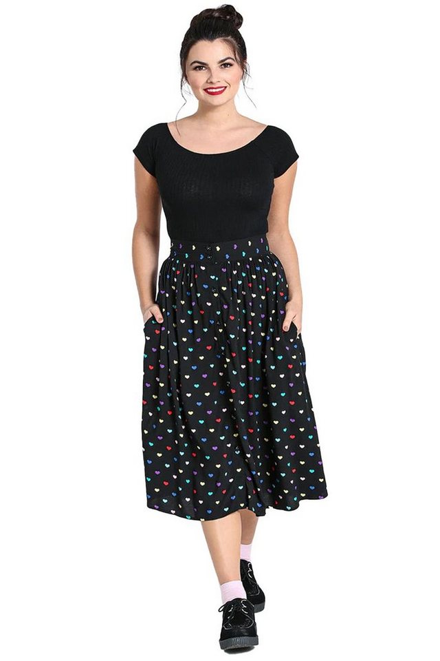 Hell Bunny A-Linien-Rock True Love Retro Herzchen Print Vintage Swing Tellerrock