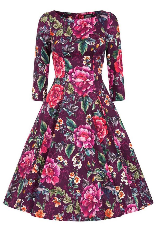 Hearts & Roses London A-Linien-Kleid Bea Floral Swing Dress Retro Vintage Fit-N-Flare 50er