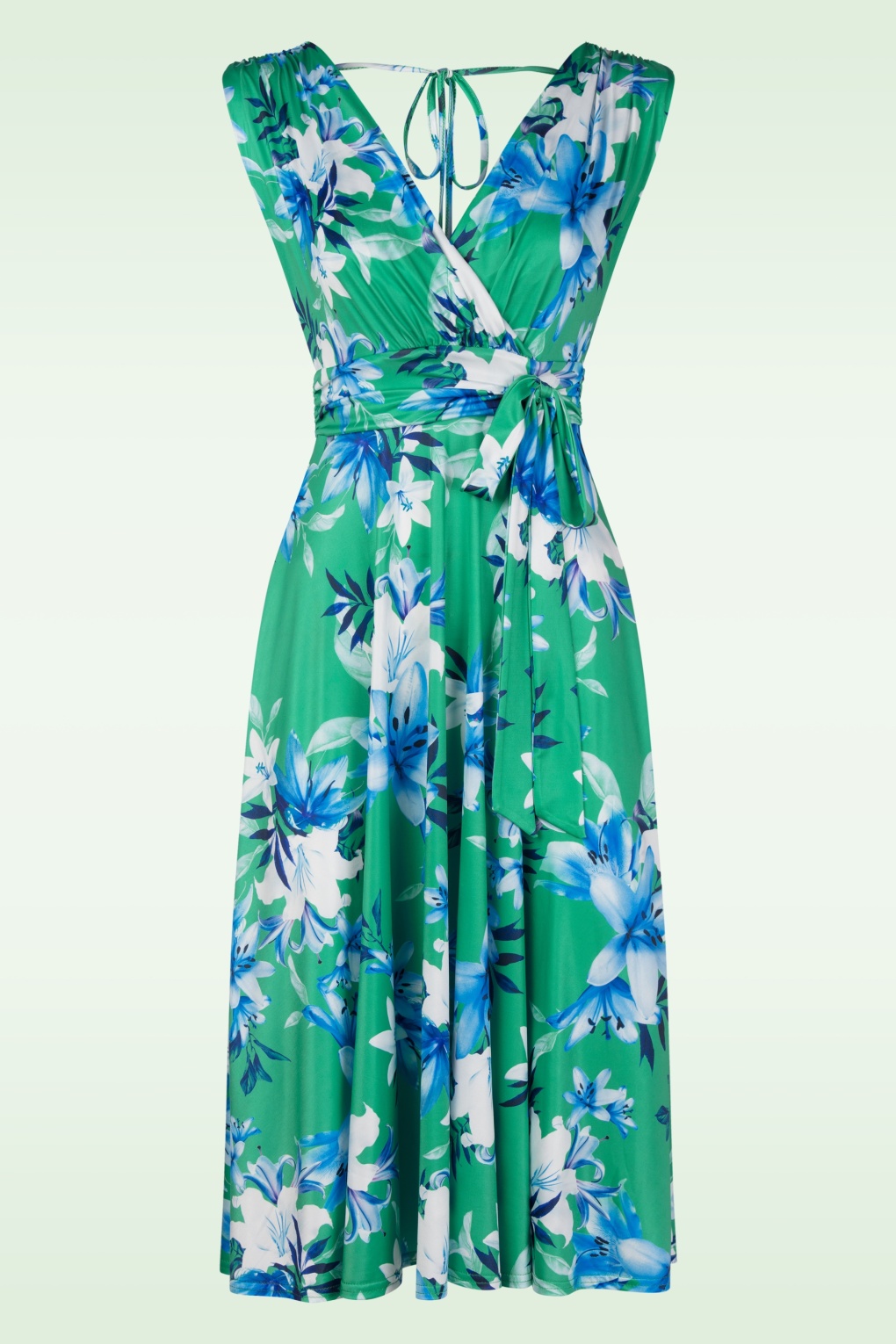 “Wave hello to paradise!“ Trägst du Jane, dann weißt du sofort: Sie ist perfekt für den Sommer! Gefertigt aus einem glatten und angenehmen, leicht glänzenden und dehnbaren, grünen Slinky Stoff, der – mit wunderschönen Lilien in Weiß und unterschiedlichen Blautönen gemustert – sich herrlich knitterfrei trägt. * Flowy Style * Gefüttertes Oberteil für den Extra-Komfort * Feste Bindebänder * Kein Reißverschluss oder Knopf; anziehen & ‚ready to go‘! * Fällt bei einer Größe von 1,70 m bis zur Wadenmitte