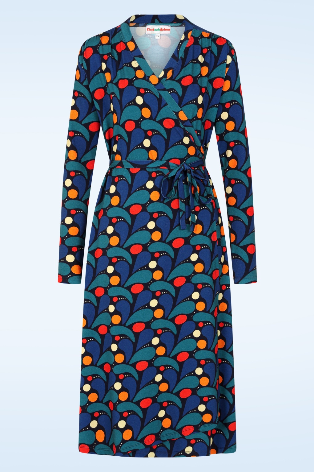 Ein Traum in klassischem Blau mit fröhlichen Farbtupfern! Cissi och Selma bietet mehr als tolle Retro-Vibes, denn die Marke legt besonderen Wert darauf, dass ihre Mode nachhaltig, biologisch und unter guten Arbeitsbedingungen hergestellt wird. Dazu gehört auch dieses schmeichelhafte Wickelkleid mit langen Ärmeln und Schleifenbändern, die deine Taille perfekt in Szene setzen. Das herrlich bequeme Modell wird aus einem geschmeidigen und elastischen EcoVero-Viskosemix in Blau hergestellt, der mit einem bunten Print versehen ist. * Wickelkleid * Lange Ärmel * Fest vernähte Schleifenbänder * Kein Reißverschluss, keine Knöpfe: einfach überziehen und los geht’s! * Endet bei einer Körpergröße von 1,70 m knapp unterhalb des Knies