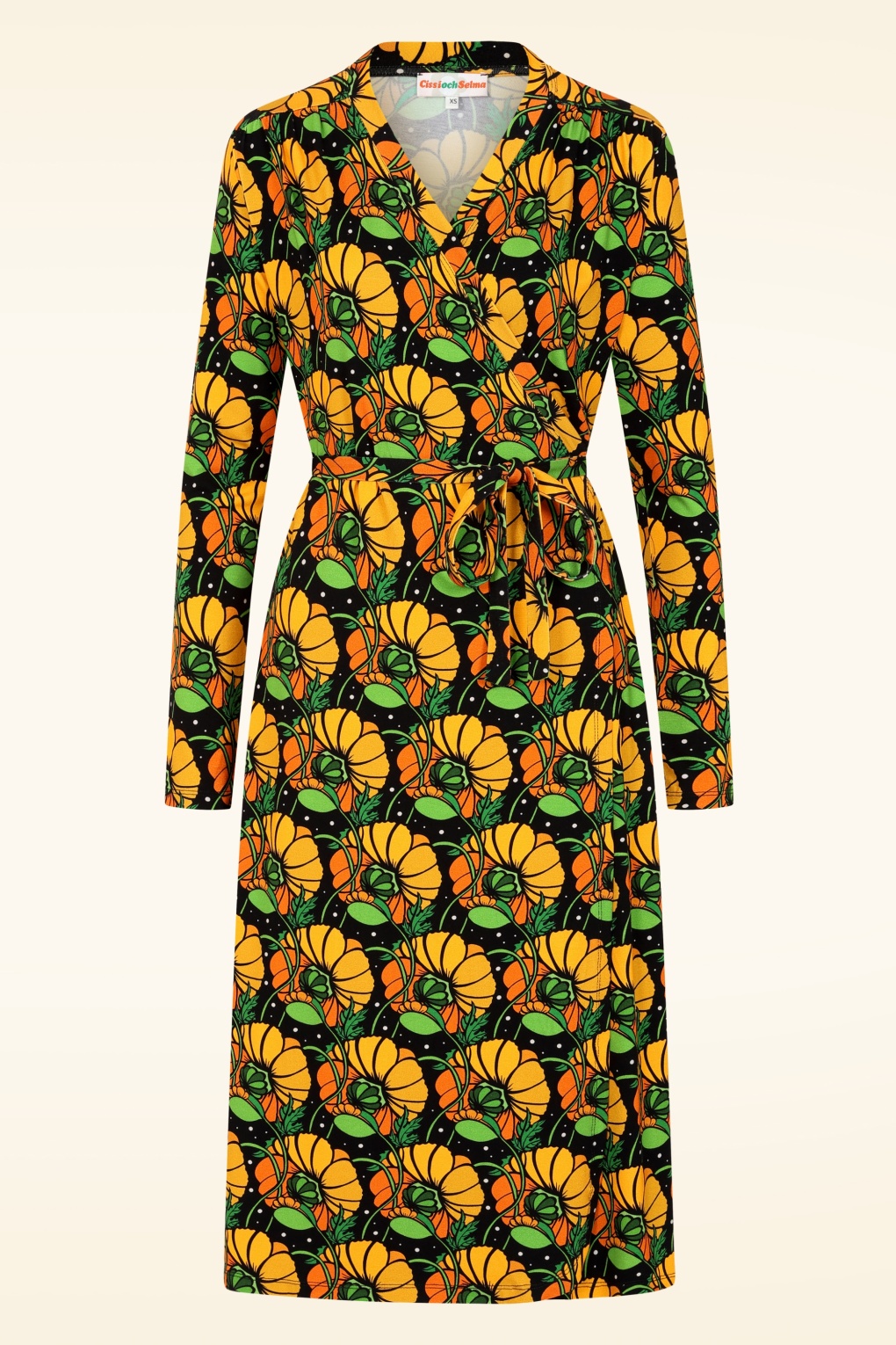 Ein Traum in klassischem Schwarz mit einem attraktiven Blumenmuster! Cissi och Selma bietet mehr als tolle Retro-Vibes, denn die Marke legt besonderen Wert darauf, dass ihre Mode nachhaltig, biologisch und unter guten Arbeitsbedingungen hergestellt wird. Dazu gehört auch dieses schmeichelhafte Wickelkleid mit langen Ärmeln und Schleifenbändern, die deine Taille perfekt in Szene setzen. Das herrlich bequeme Modell wird aus einem geschmeidigen und elastischen EcoVero-Viskosemix in Schwarz hergestellt, der mit einem farbenfrohen floralen Print versehen ist. * Wickelkleid * Lange Ärmel * Fest vernähte Schleifenbänder * Kein Reißverschluss, keine Knöpfe: einfach überziehen und los geht’s! * Endet bei einer Körpergröße von 1,70 m knapp unterhalb des Knies