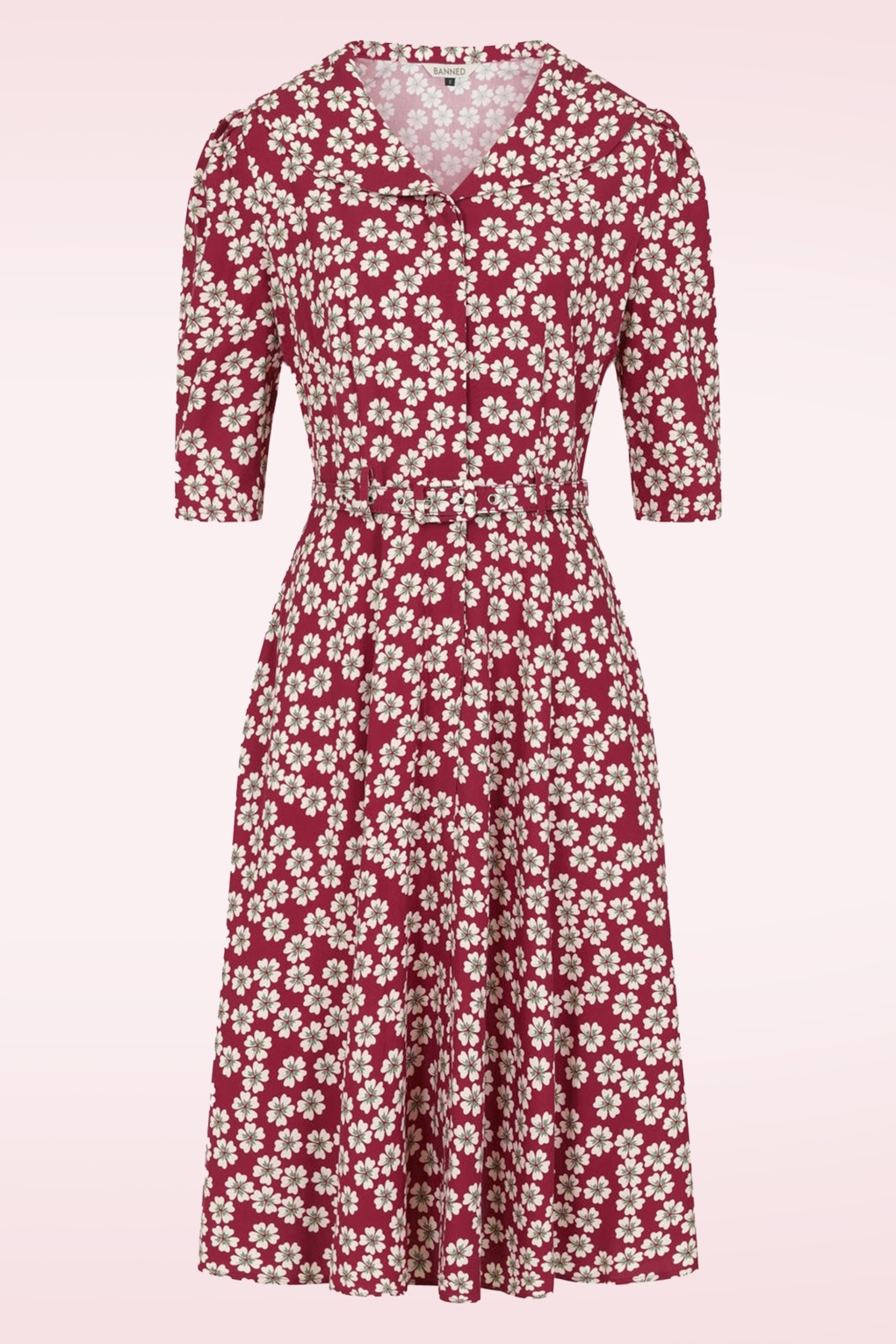 “May you blossom like a flower!“ Dieses Prachtkleid hat 3/4 Puffärmel, praktische Taschen und verleiht dir einer super feminine Silhouette. Gefertigt aus einer angenehmen und luftigen, bordeauxroten Viskose, versehen mit herzallerliebsten Blumen. * Semi-Swing Modell * Abgerundeter Kragen * 3/4 Puffärmel * Verdeckte Knöpfe vorne * Abnehmbarer Gürtel, für eine besonders tolle Taille * Seitentaschen * Fällt bei einer Größe von 1,70 m bis zur Mitte der Wade