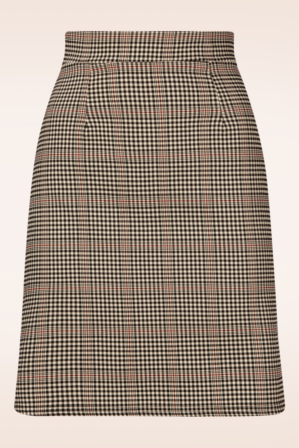 Karos und zauberhafter Charme bis fast zum Knie: Der Rock Lina wird hoch in der Taille getragen und hat einen attraktiven ausgestellten Schnitt. Er ist aus einem festen, aber elastischen, Bengalin-ähnlichen Stoff in Beige gefertigt und mit einem Karomuster in Schwarz und einem Hauch von Rot versehen. * Ausgestellter Schnitt * Verdeckter Reißverschluss hinten * Endet bei einer Körpergröße von 1,70 m knapp über dem Knie * Exklusiv bei Topvintage erhältlich