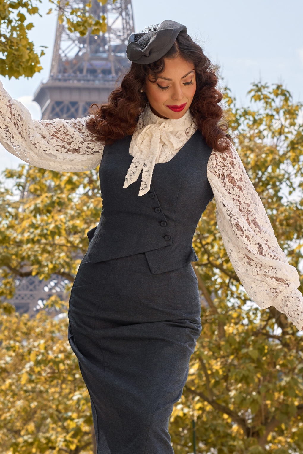 Eine Hommage an zeitlose Weiblichkeit – wo zart-elegante Schnitte auf die Romantik der Pariser Winter treffen. Diese Weste aus der neuen Kollektion wurde von der fabelhaften Marie-Louise Carven inspiriert, einer wegweisenden französischen Modeschöpferin der 40er und 50er Jahre. Der hochwertige grau-blaue Viskosemix (nicht dehnbar) mit subtiler Struktur und die figurbetonte, feminine Passform sorgen für einen eleganten Look. * Kürzere Länge * Gefüttert * Ärmellos * Schräg verlaufende Knopfreihe * Vervollständige deinen Look mit dem passenden Bleistiftrock und/oder der Jacke (separat erhältlich).