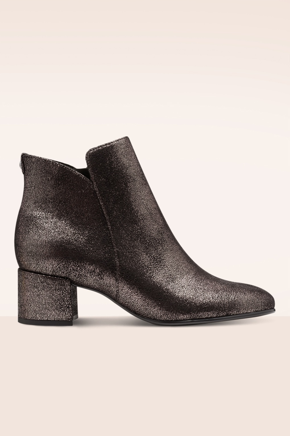 Lass dich vom Metallic-Look verzaubern! Diese Stiefeletten aus zinnbraunem veganem Wildlederimitat mit einem braunen Unterton wurden mit einer glänzenden Überzugsschicht versehen und haben einen niedrigen Blockabsatz. * Runde Zehenkappe * Niedriger Blockabsatz * Seitlicher Reißverschluss * Bequemes TOUCHit-Soft-Fußbett * Rutschfeste Laufsohle und Absatz * Vegan approved!