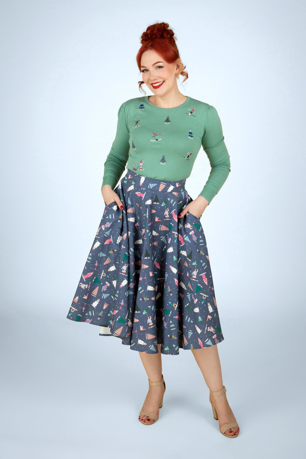 Dreh dich tausendfach – immer & immer wieder; mit diesem Prachtexemplar eines Swingrockes! Gefertigt aus einem festen, aber angenehmen, graublauen Baumwollmix, der sich wunderbar mit dir mitbewegt! * Swing Modell; kann mit einem unserer Petticoats kombiniert werden * ‚It has pockets!‘ * Reiß- mit Hakenverschluss hinten * Fällt bei einer Größe von 1,70 m über das Knie