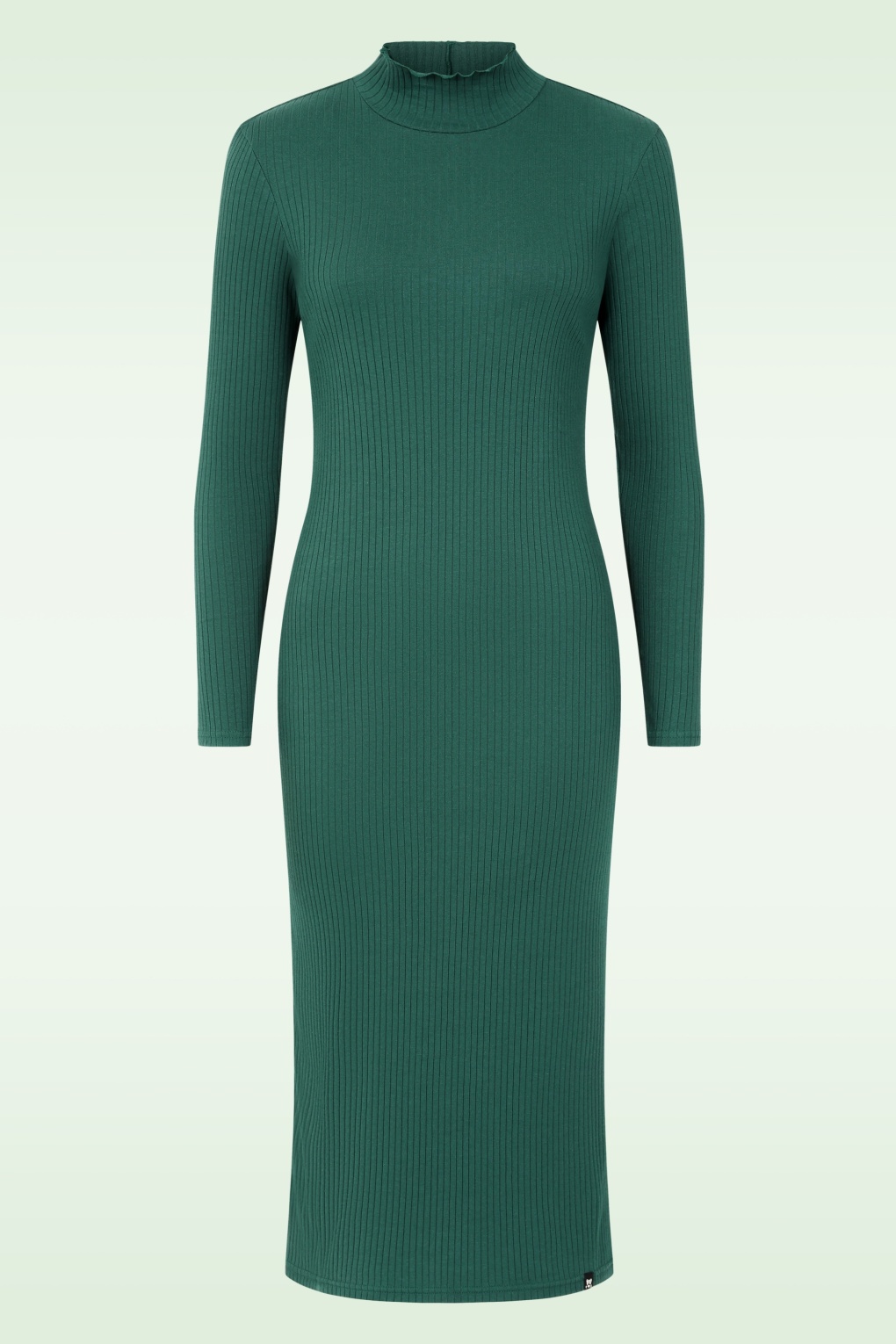Unkompliziert, stilvoll und umweltbewusst: dieses figurbetonte grüne Midikleid wirst du ständig tragen wollen! Das Modell mit Stehkragen und langen Ärmeln, das aus einer superbequemen und elastischen Bio-Baumwollmischung in Dunkelgrün gefertigt ist, passt sich perfekt an deine Kurven an. * Midi-Länge * Stehkragen * Lange Ärmel * Kein Reißverschluss, keine Knöpfe: einfach reinschlüpfen und los geht’s! * Endet bei einer Körpergröße von 1,70 m auf Wadenhöhe