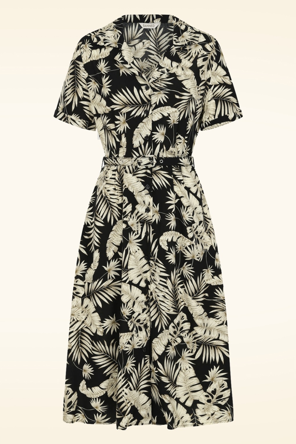 “Feeling palm-tastic!“ Dieses Yvette Palm Leaves Kleid führt dich regelrecht in die Sonne! Es hat einen elegante V-Ausschnitt, Reverskragen, kurze Ärmel und entfaltet sich in einen wunderschöne Semi-Swing Rock, der dir eine wunderschöne feminine Silhouette verleiht! Gefertigt aus einem angenehmen und luftigen, schwarzen Viskose (100%), die in einem weichen Gelb ein Muster der Palmenblätter zeigt. * Semi-Swing Modell * V-Ausschnitt * Reverskragen * Kurze Ärmel mit fest umgeschlagenen Saum * Knopfreihe * Abnehmbarer Gürtel für eine besonders tolle Taille * Seitentaschen * Fällt bei einer Größe von 1,70 m bis zur Mitte der Wade