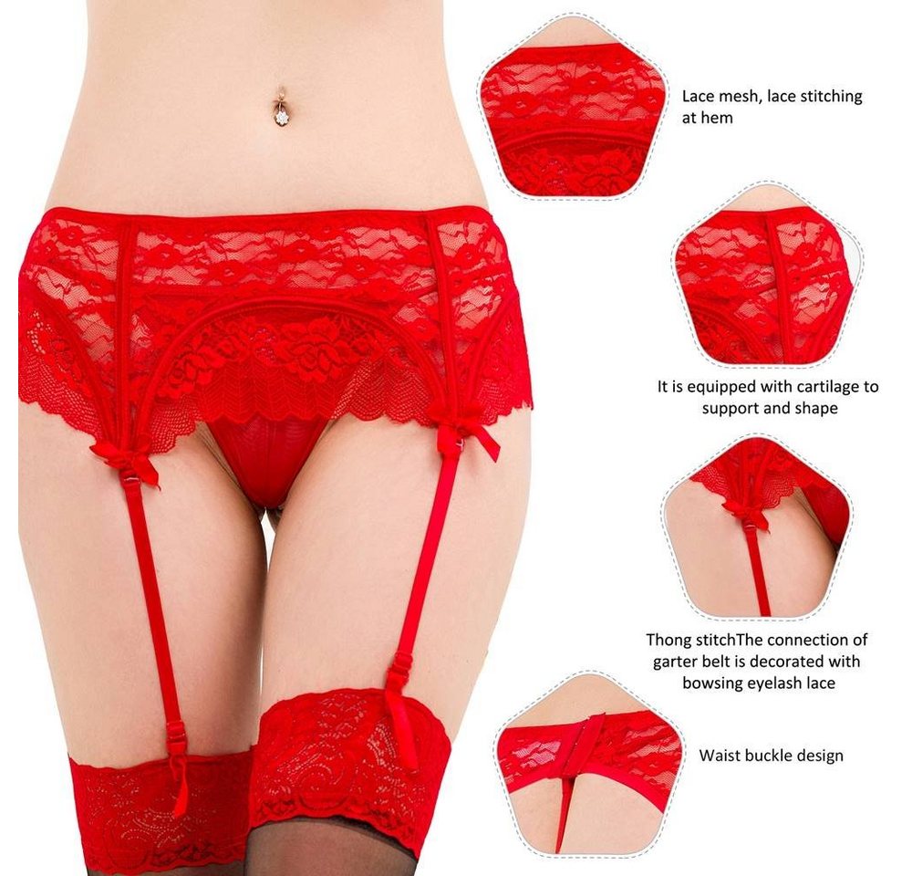 Lau-Fashion Strapsgürtel Strumpfhalter Unterwäsche Spitze Hüfthalter Strapse String Tanga S/XL