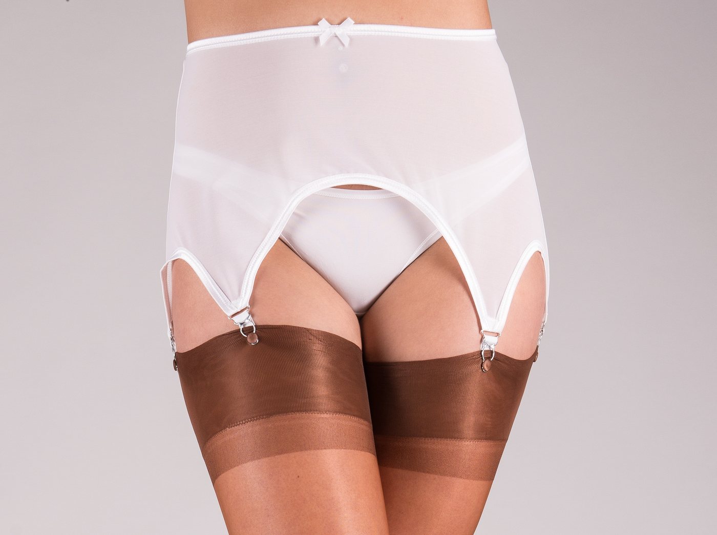 Der Strumpfhalter Rom ist aus feinem Power Mesh gefertigt und dadurch nicht nur sehr leicht anzuziehen, sondern auch wunderbar angenehm auf der Haut zu tragen. Die sechs Strapse sind in dem Stoff integriert und halten mit eleganten Metallclipsen ihr Nylons am Bein. Eine schwarze Schleife am vorderen, oberen Bund trägt bei zu dem femininen Stil, den dieser Strumpfhalter auch an Ihre Hüfte zaubern wird. Produktinformation: 80% Polyamide, 20% Elasthan Handwäsche wird empfohlen